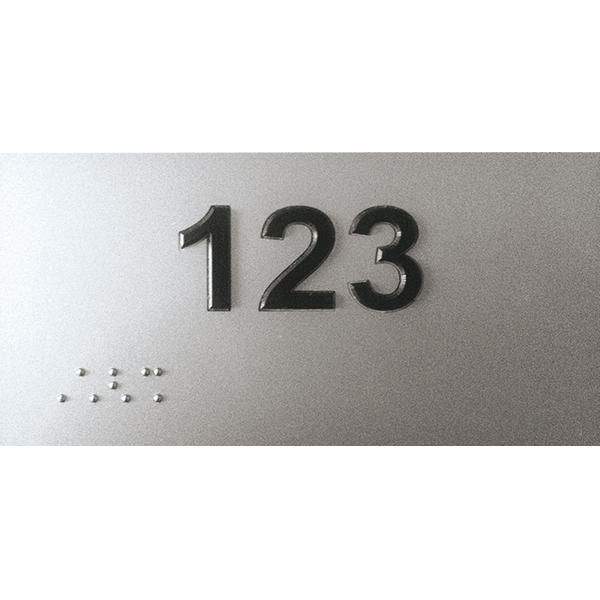 - Chiffres en relief noir mat, marquage en braille billes inox.
