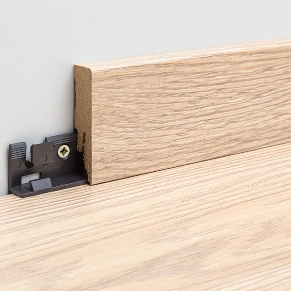 - Facilite la pose des plinthes par simple pression.
